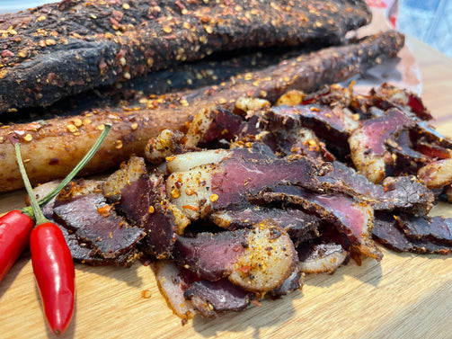Our biltong, droëwors, cabanossi & stokkies are all made locally