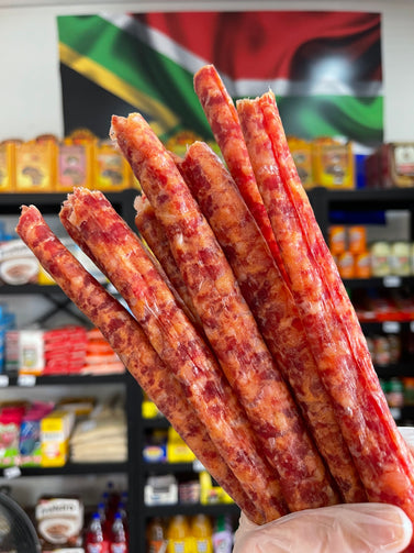 Authentic South African pork cabanossi. Slightly smoky in flavour with hints of pepper, onion, garlic and coriander.